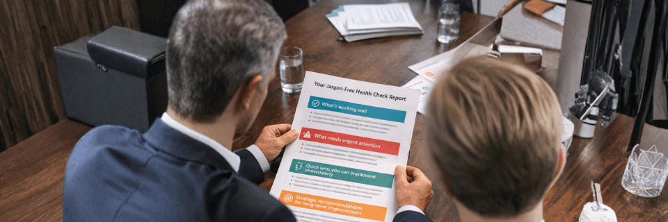 After the Health Check, you’ll receive a clear, jargon-free report outlining: